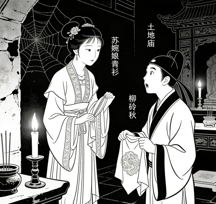 当夜他在庙中借宿,烛火摇曳间,竟见绣帕自袖中滑落,化作个身着青衫的女子,眉眼如画,气质清雅,只是面色透着几分苍白。