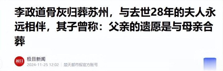 极目新闻——李政道骨灰归葬苏州,与去世28年的夫人永远相伴,其子曾称:父亲的遗愿是与母亲合葬 2024-11-25