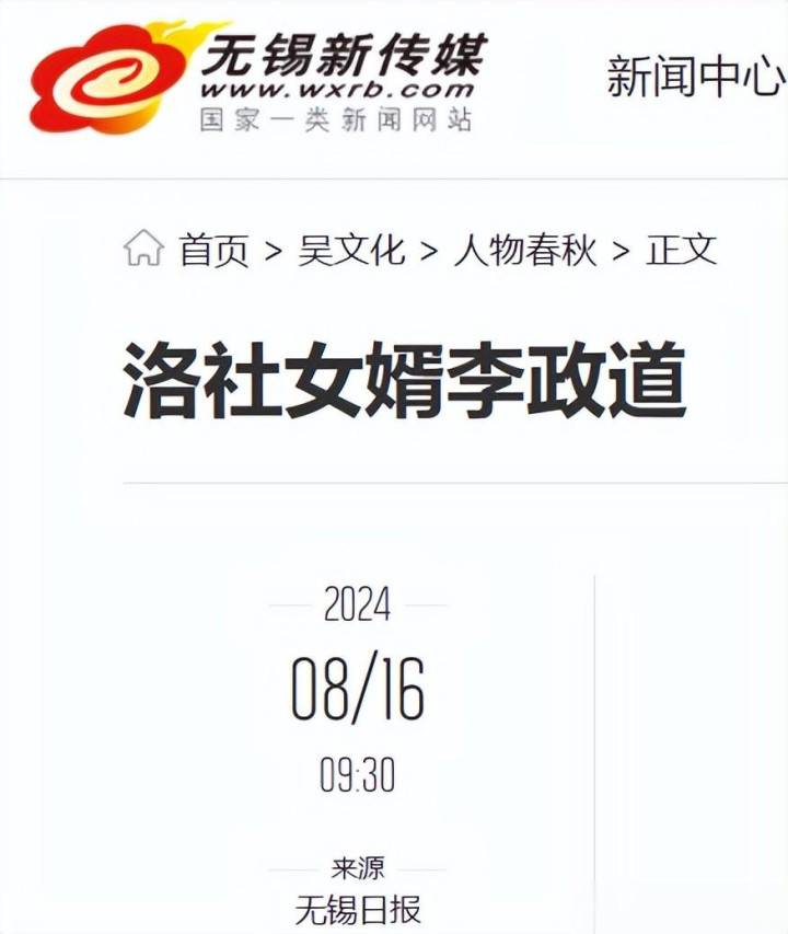 无锡日报——洛社女婿李政道 2024-08-16