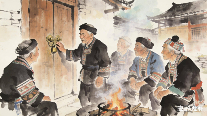 村里老人闻讯赶来,围着那扇锁死的门议论: