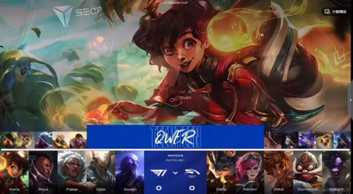 T1:上单Doran、打野Oner、中单Faker、下路Peyz、辅助Keria