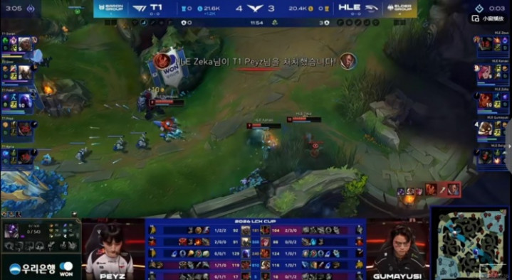 [11:58]T1上野两次越上强杀Zeus兰博,同时HLE四人包下,牺牲Delight牛头换掉了T1下路组!最终是2换2!随后Faker瑞兹开车包上,Zeus兰博连续阵亡!HLE换掉第二条小龙!