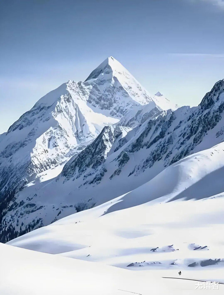 首联“雪山清晓立崔嵬,天外琼楼亦壮哉”以宏大视角开篇,“清晓”点明时间,晨光初染,雪山在薄雾中如巨人般高耸险峻,直破天际。