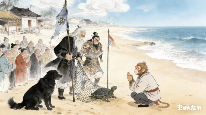 果然,众人抬头,见云端站着太白金星,手持拂尘微笑:“玉帝已知此事。那黑犬确有避水血脉,昨日被真君调水时的神力唤醒,才叼走宝旗。而渔夫之梦,实乃玄武真君显灵,他见江淮将有水患,特借这一犬一人之手,提前布下防线。”