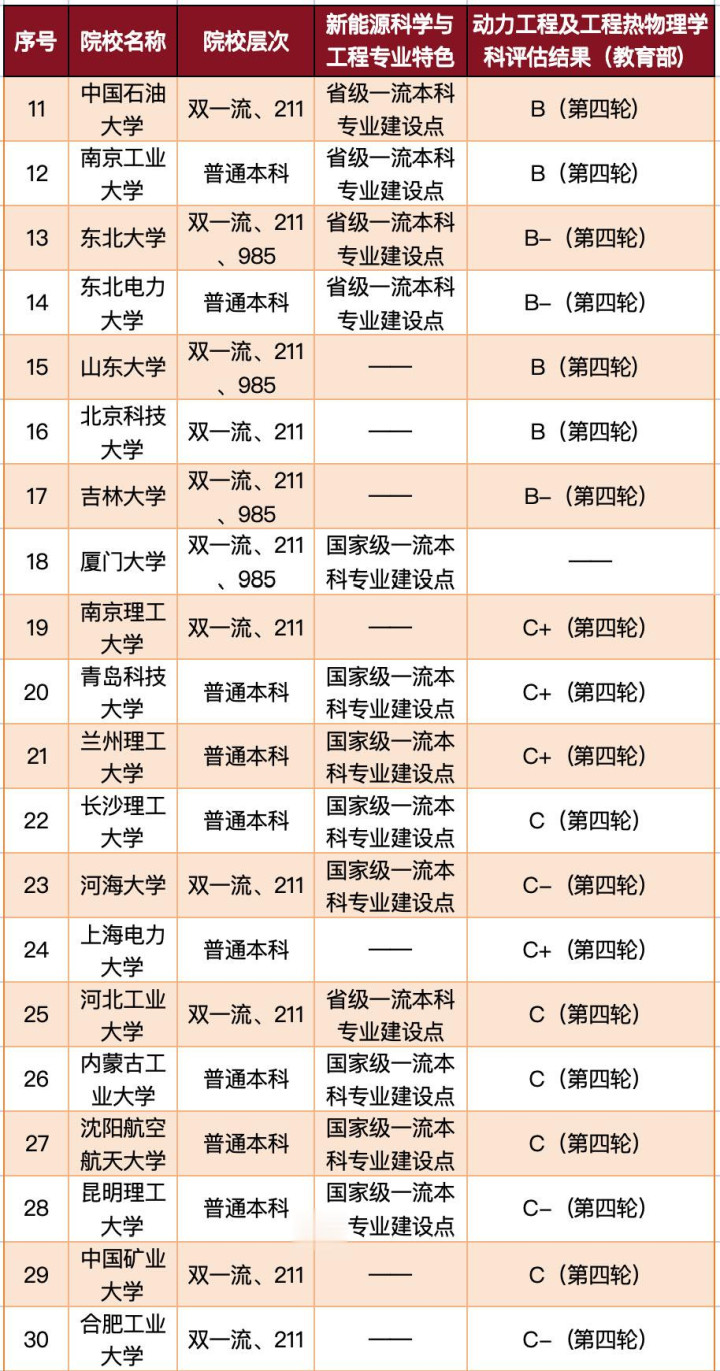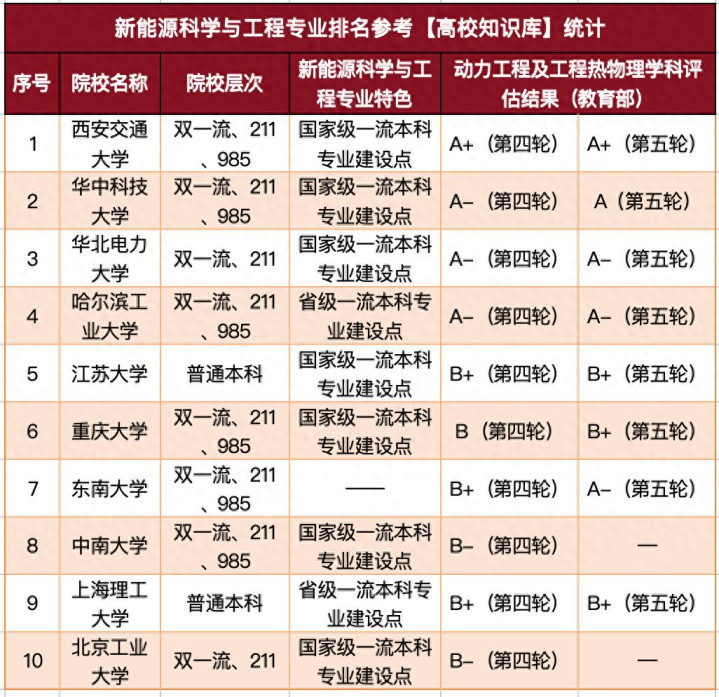 根据能动学科的教育部评估结果、双万计划等信息统计,新能源科学与工程专业实力强的60+所大学如下: