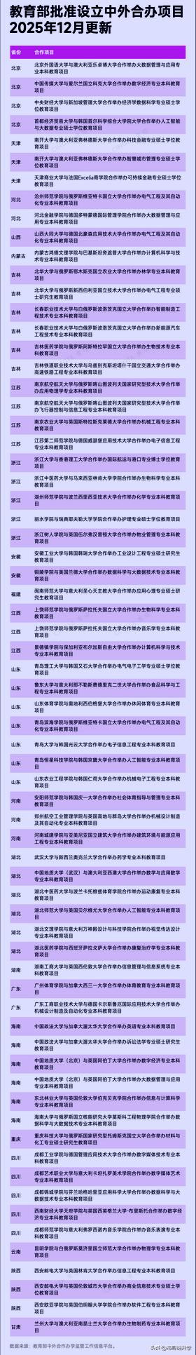 核心结论先划重点:这批新增项目覆盖多省份、多专业,办学质量有教育部背书;2026届考生可重点关注,部分项目大概率纳入普通高考招生计划,用国内高考分数就能享受优质国际教育资源,提前了解就能抢占先机!