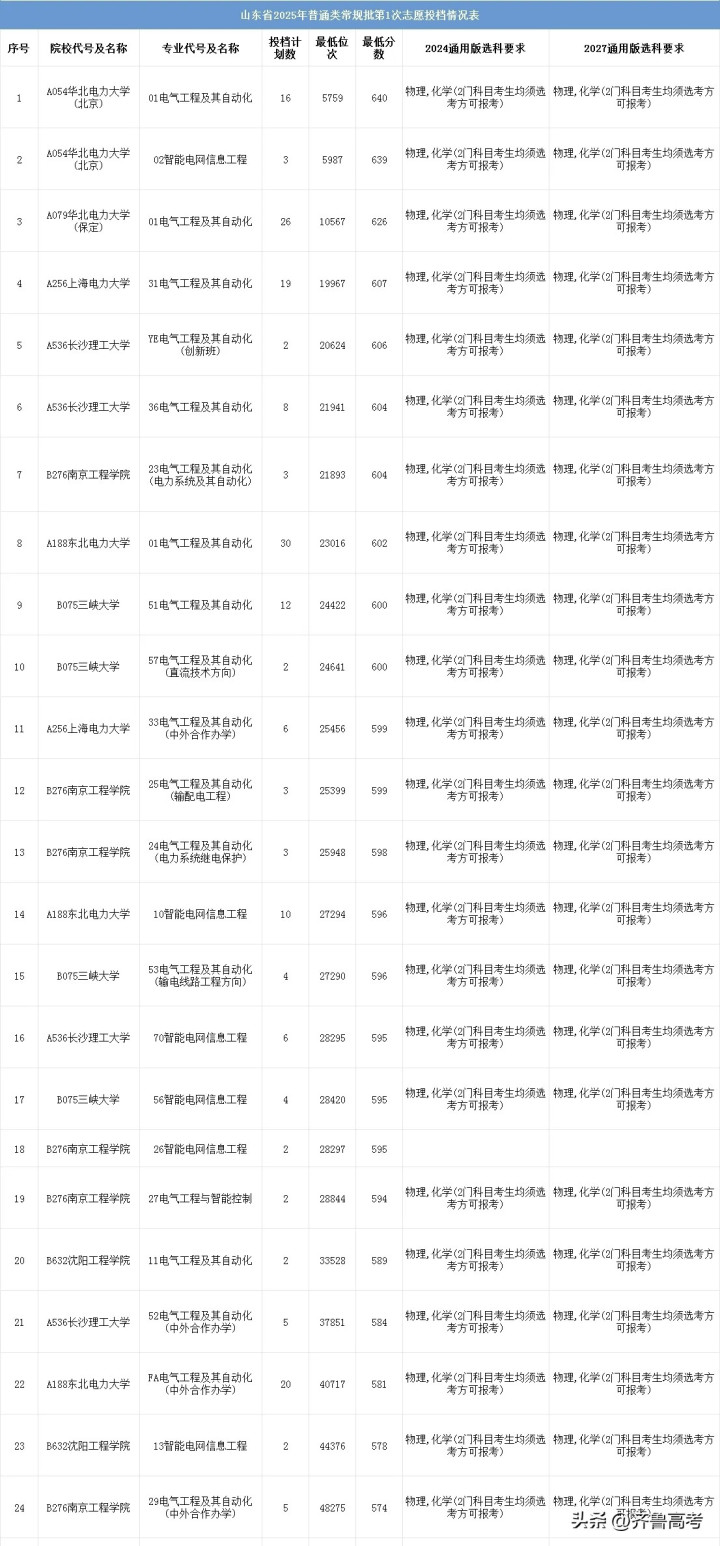 电气界的“二龙四虎”,录取分太高了。下面列举一下山东高校电气类院校录取分与原电力部直属高校录取分。