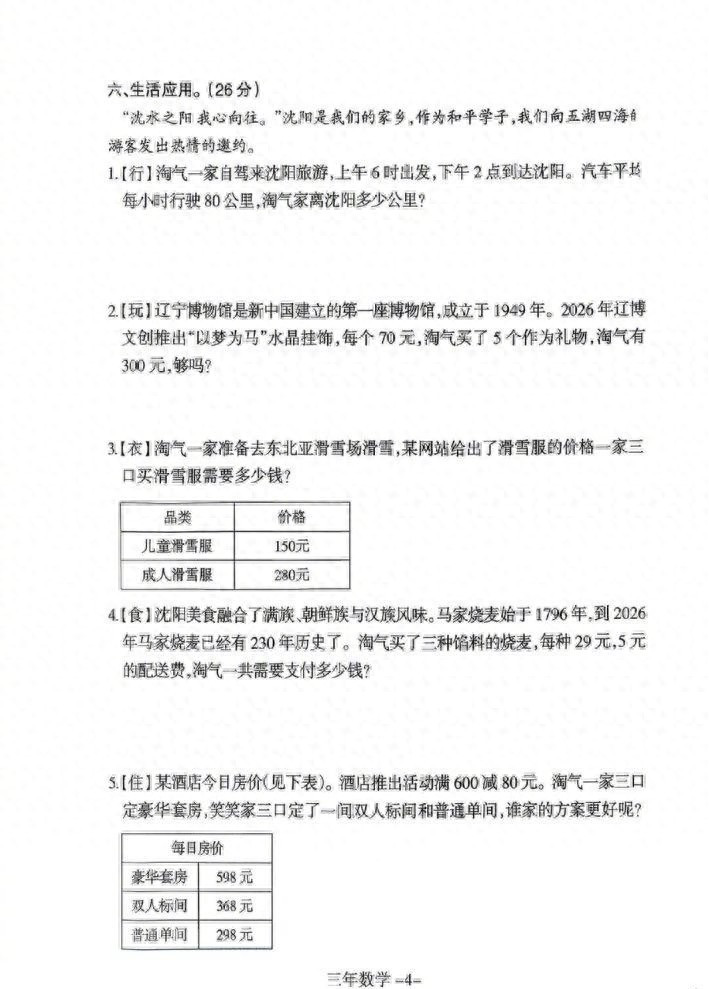 一份三年级数学期末卷,把沈阳送上了热搜。